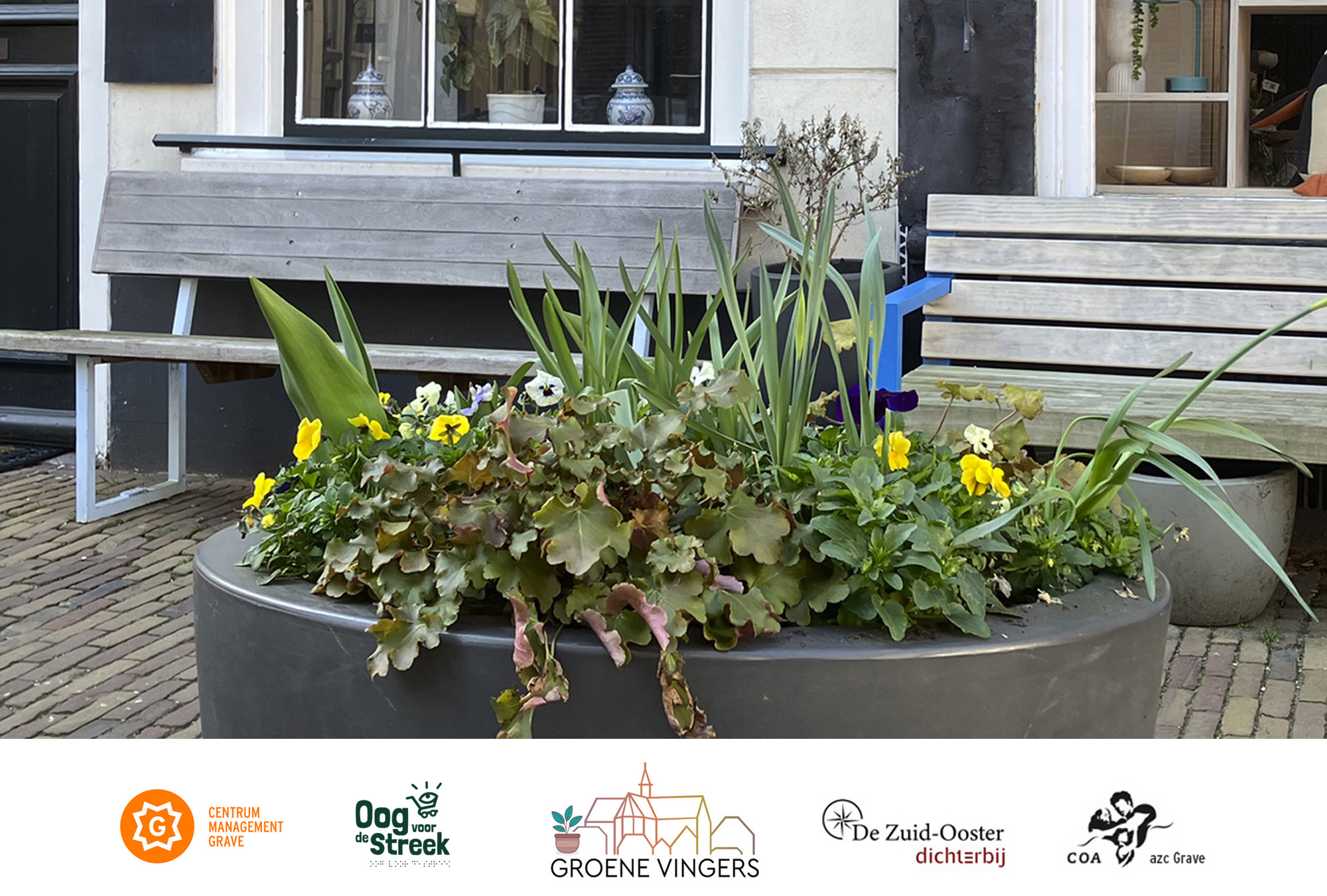 Sociaal maatschappelijk project “Groene Vingers” is opgezet om het groen in het centrum van Grave op een structurele manier te onderhouden. Centrum Management Grave (CMG) bundelt hiervoor de krachten met dagbesteding Oog voor de Streek, dagbesteding de Zuid-Ooster, onderdeel van zorginstelling Dichterbij en het COA (azc Grave).